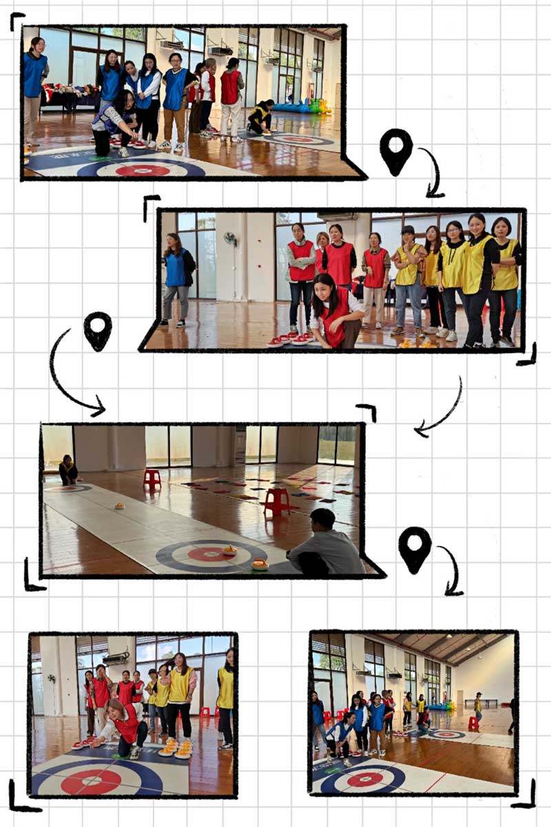 在享用美食,欣賞美景之余,公司還為大家安排了輕松愉快又不乏挑戰(zhàn)性的小游戲,包括合力筑塔、急速六十秒、指壓板接力賽等等,還進行了一場激烈的旱地冰壺大賽。